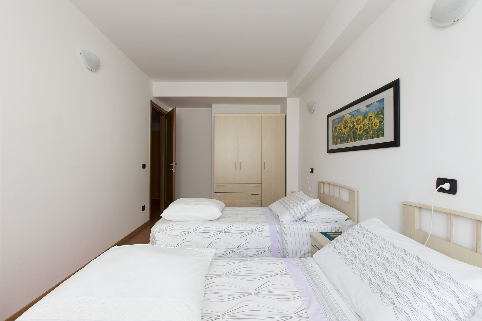 – 4 posti letto (possibilità di culla e seggiolone): 1 camera doppia/matrimoniale + 1 soggiorno con divano letto matrimoniale